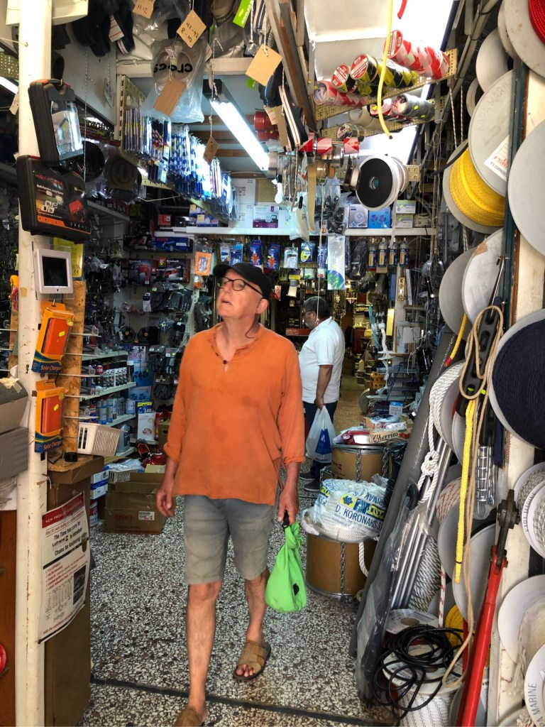 We had another good day wandering around the town, buying a few things at the chandlers (better stocked than some of the “flash” stores on the mainland) and relaxing in our quiet bay.