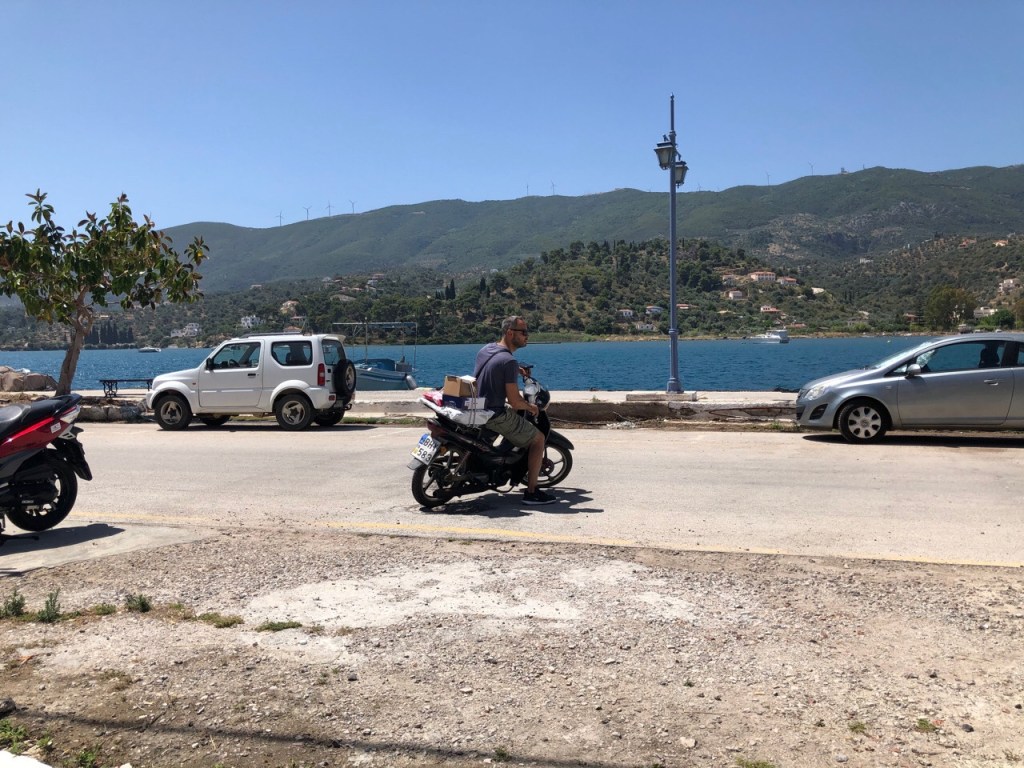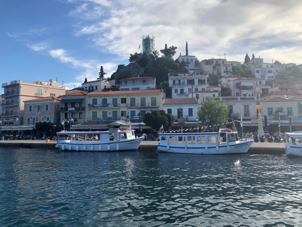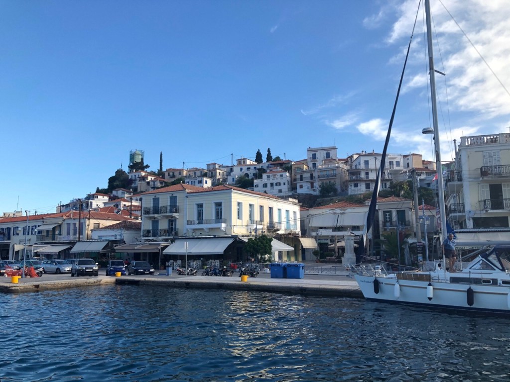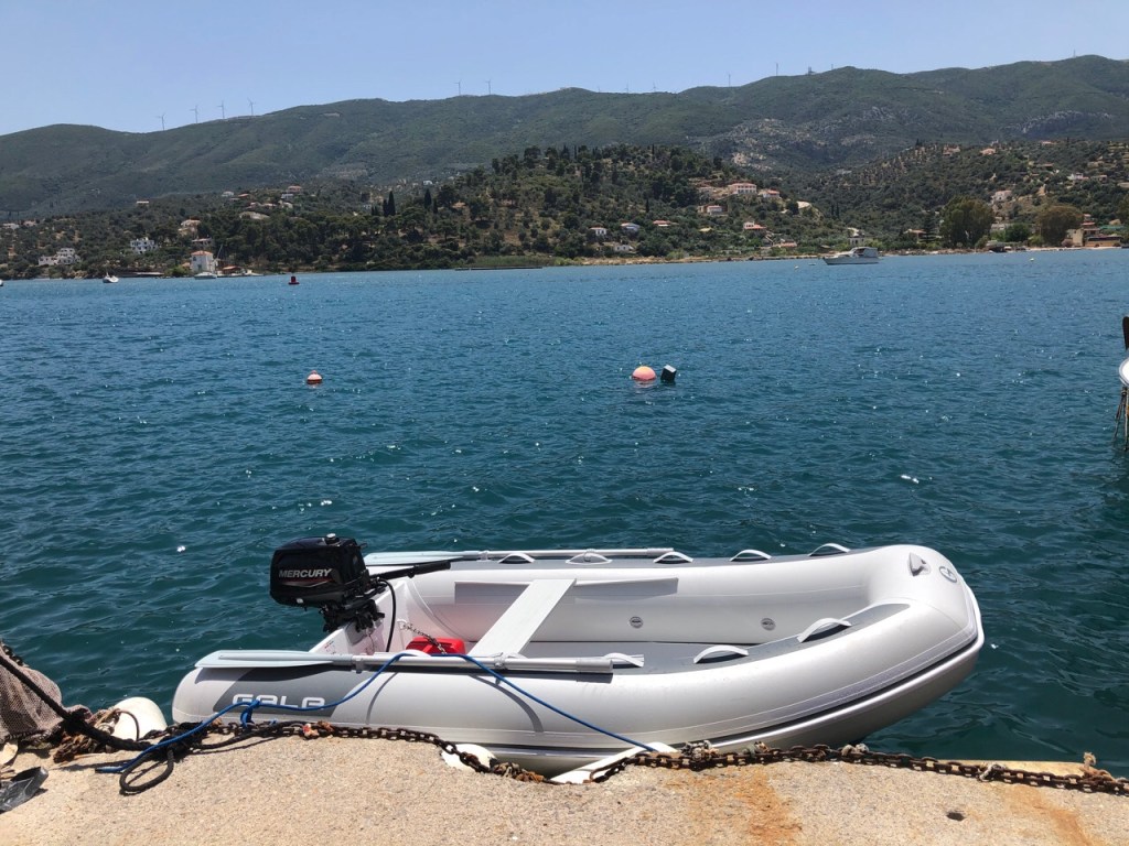 The following day we took our new dinghy and outboard over to Poros town for their first proper outing. Our Mercury outboard propelled us quickly over to the Centre and once there, we found plenty of spots where we could tie up as there were very few visitors.