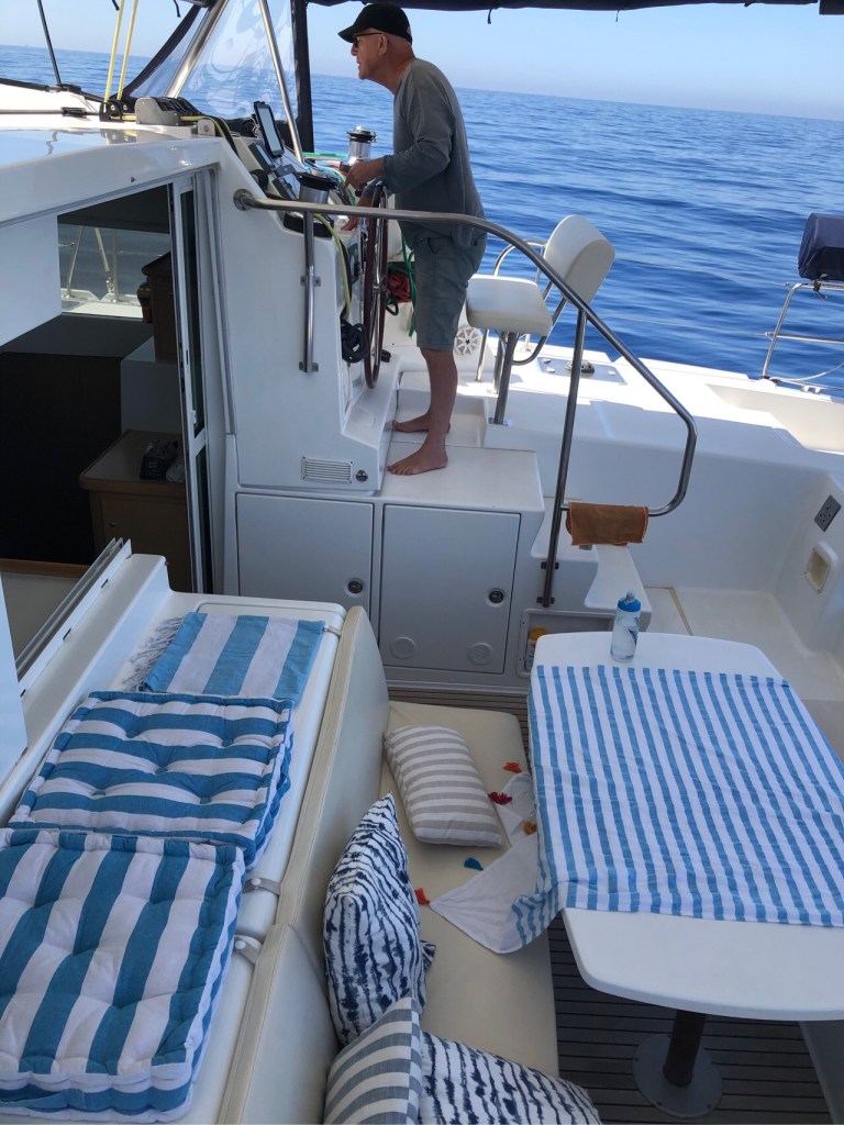 It was such a good feeling gazing at the dark blue waters and feeling the salty air on our faces. Unfortunately there was very little wind so we ended up motoring the whole way but we really didn’t care. It was just so great to stretch our sea legs again and get used the different motion of a catamaran after sailing exclusively on monohulls previously.