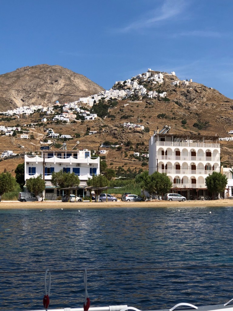 After Serifos, with its stunning chora stretching way up the hill above the anchorage, we headed for another low key but lovely island, Sifnos.
