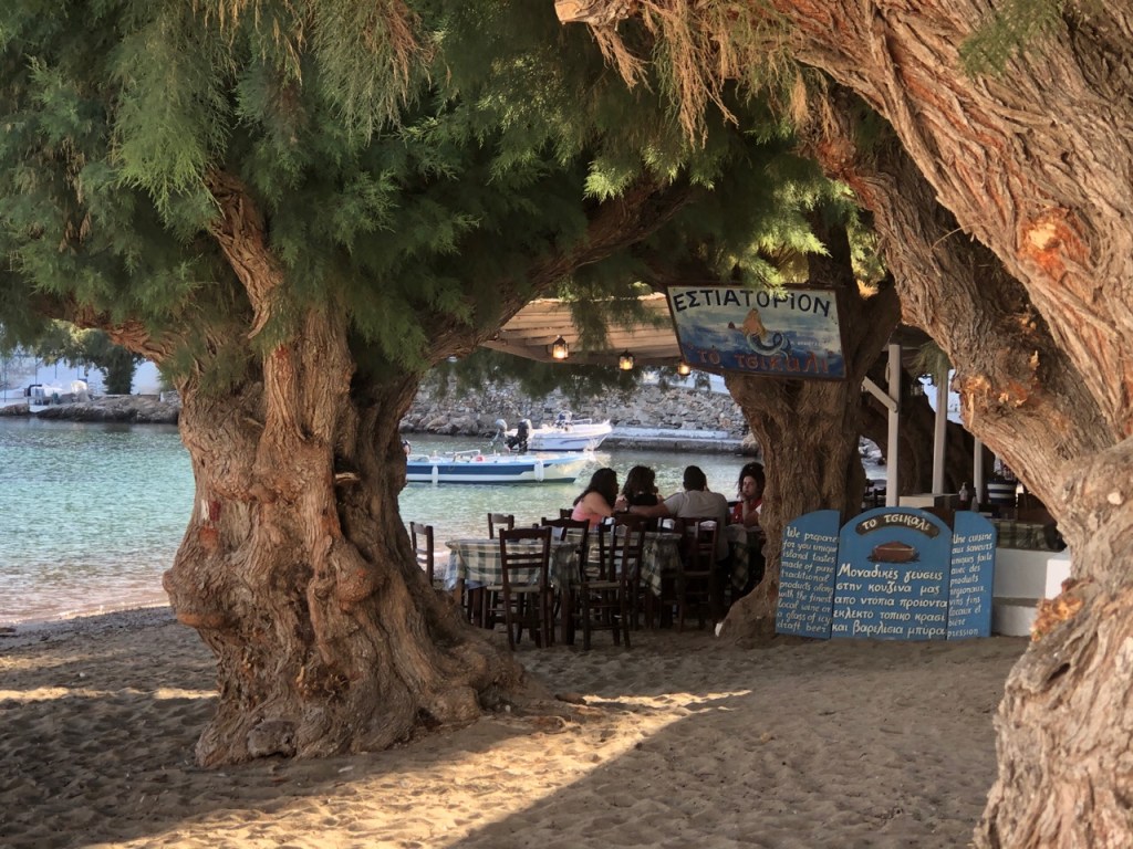 Once on land we had a look round the exterior of the chapel (unfortunately it was locked) and walked through an archway to the cutest little beach imaginable with a lovely shady taverna that looked very appealing.