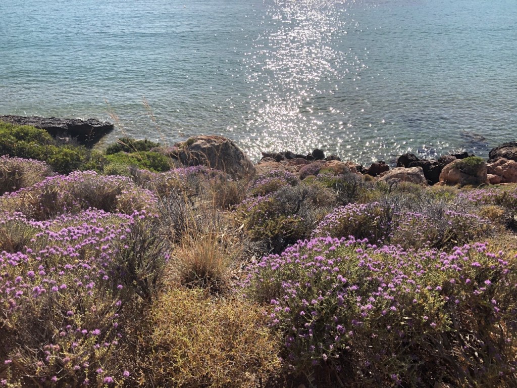 Rather than sit down and order a long cold drink we decided we should go for a walk first, so we followed the coast round to the other side of the bay. On the way there were a handful of other tavernas, a useful looking shop and a number of small holiday homes.