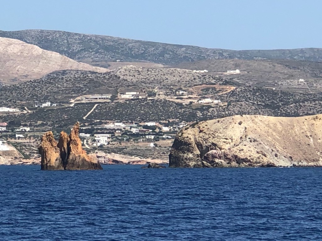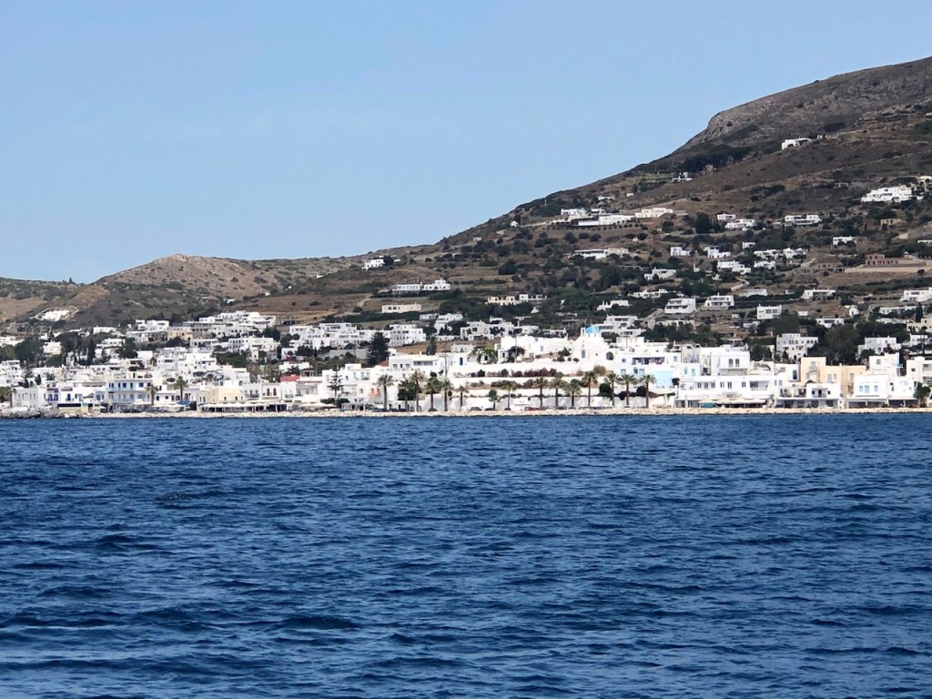 The following day we motor sailed to Paros (the wind was light and intermittent) which took us about four and a half hours. When we arrived we made our first attempt at Mediterranean stern-to mooring. For those who don’t know, there are a few variations of this and the one we were trying to accomplish entails dropping the anchor and then reversing into your “parking space “ and securing lines ashore from the stern (back of the boat).
