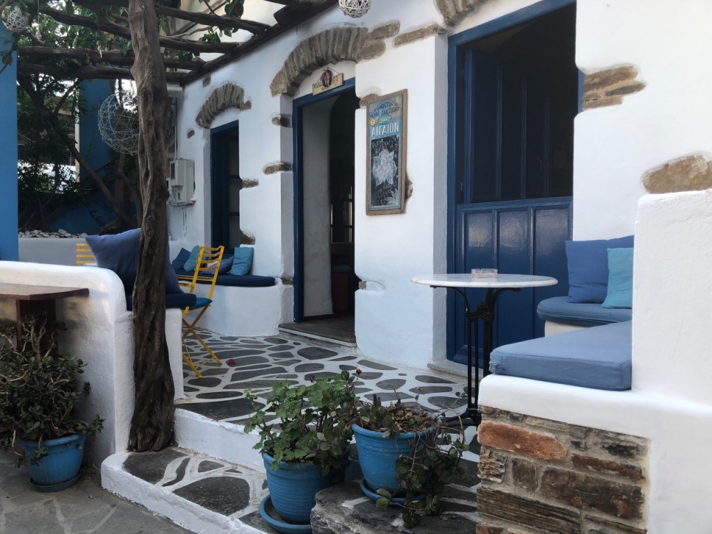 Once we settled Sunday down we went ashore at Xilikeratidi and walked round to Katapola along the water’s edge. There were very few people about but there were a couple of pretty tavernas open where locals were playing backgammon and others enjoying a catch up with friends.