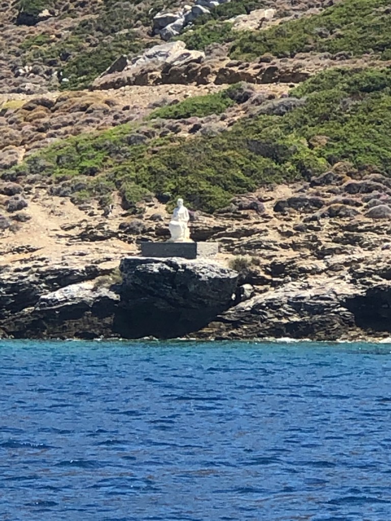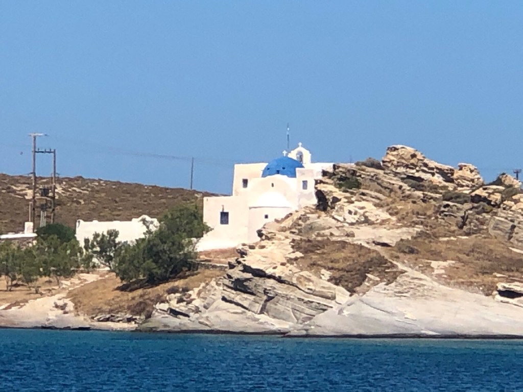 It seemed such a shame to have to leave the wide and beautiful bay of Ormos Agiou Ioannou on Paros after only one night but we had to get out of Greece quickly or possibly face fines for overstaying (even though for two and a half months we were required to stay put because of Covid-19 lockdown).