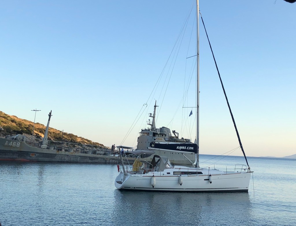 The port at Schoinoussa was really small with just a few tiny fishing boats and a couple of pleasure boats moored, an elderly navy frigate berthed and one other charter yacht anchored. The port might be small but it is regarded as one of the best shelters for small boats in the Aegean.