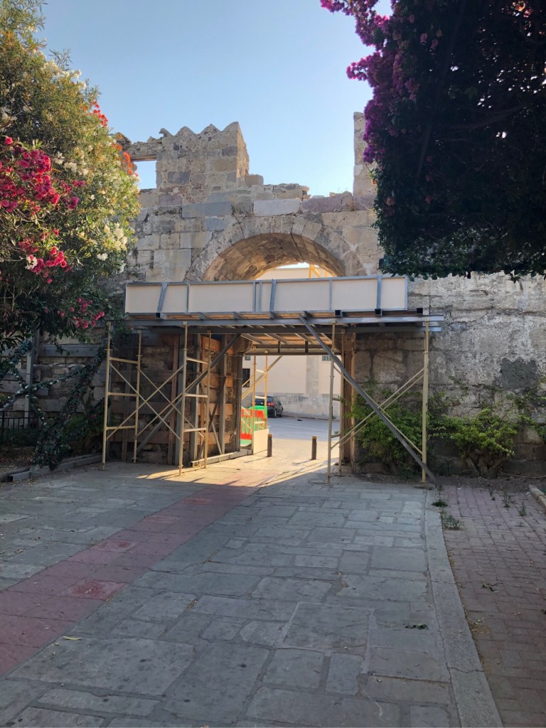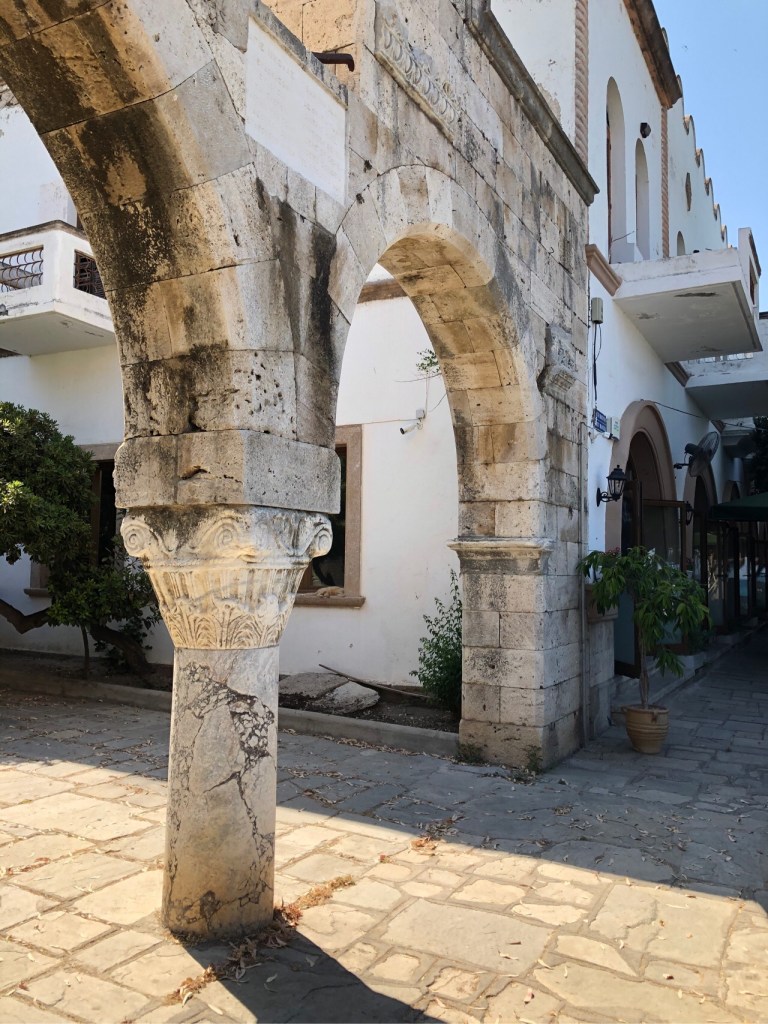 We felt such a sense of relief as we trudged back round the bay once again. We celebrated with a nice lunch and a walk round the interesting but ramshackle archeological site of the ancient agora which was discovered after the catastrophic earthquake of 1933 destroyed Kos city centre.