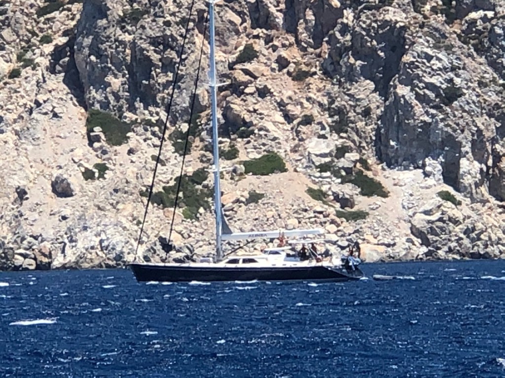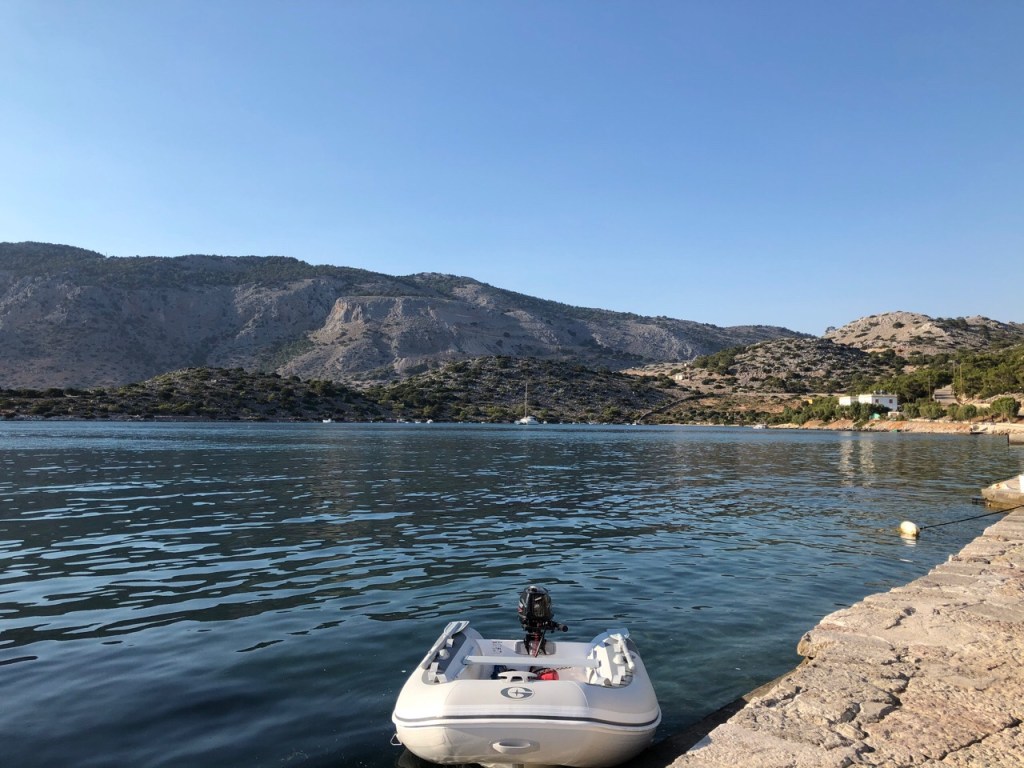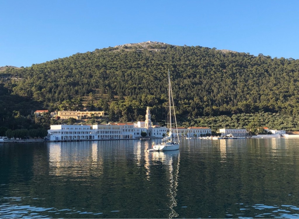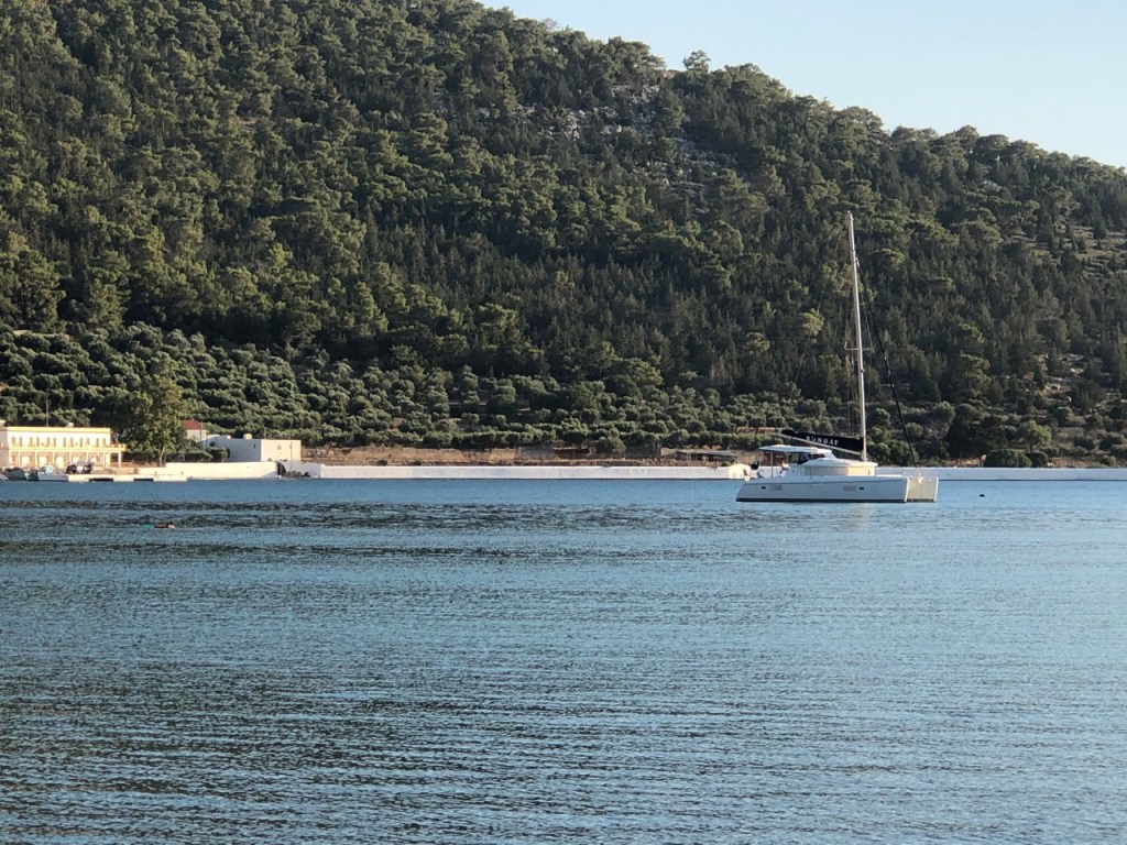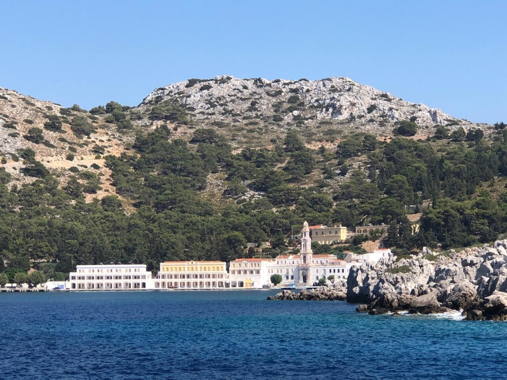 We entered the lovely, enclosed, Panormitis Bay, around 4 pm and as we were the only yacht there we could drop our anchor in the very best spot.