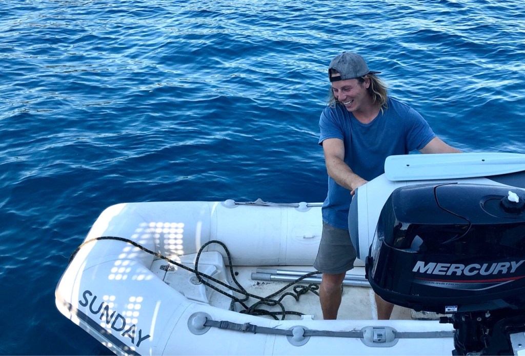 It was about 5pm by the time we arrived and as we approached the anchorage we were amazed and very happy to see that there were three boats already anchored there – and they were all Aussi or Kiwi boats! The most incredible coincidence was that one of them was the OTHER Sunday – registered in Australia with video bloggers Ryan and Brittni and their dog Jackson and rescue cat Finn on board.