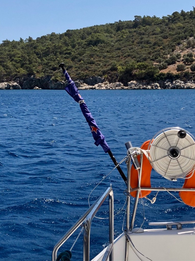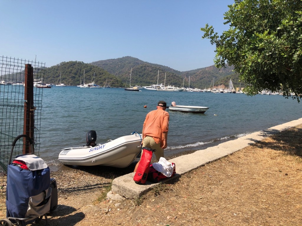 By the time Jonathan had reached the yacht the skipper had swum back empty handed. The wind was so strong that it moved the dinghy like lightening towards Kalkan.