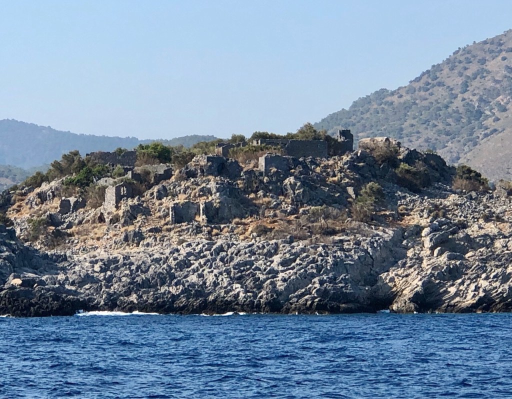 As we turned to enter the bay we were surprised to see that at its entrance was a tiny island littered with ruins. Turkey is covered in relics from the past and I suppose if you live here you tend to become blasé about them but they continue to amaze us every time!