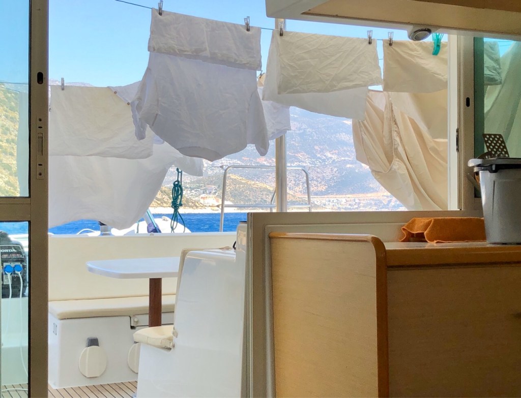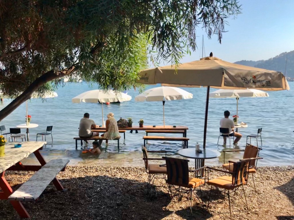 My sister Julia’s week-long visit was over in a flash but we had packed a lot in to a short space of time. Our final night together was spent at anchor in Göcek and a meal out in a restaurant on the pretty water front.