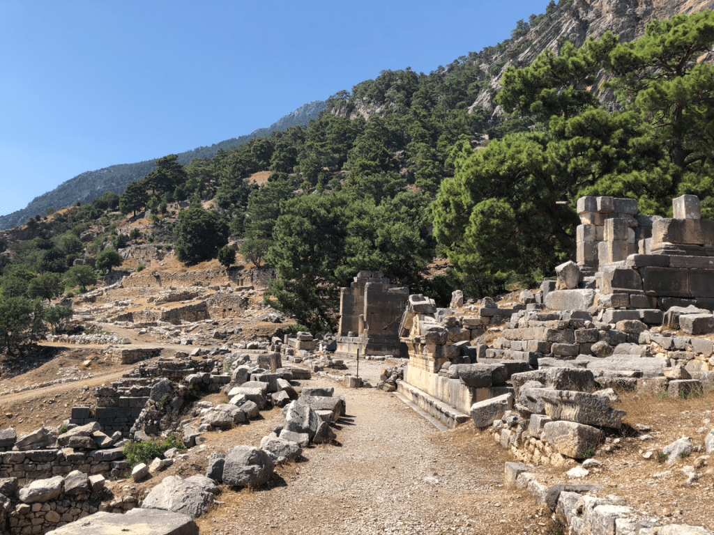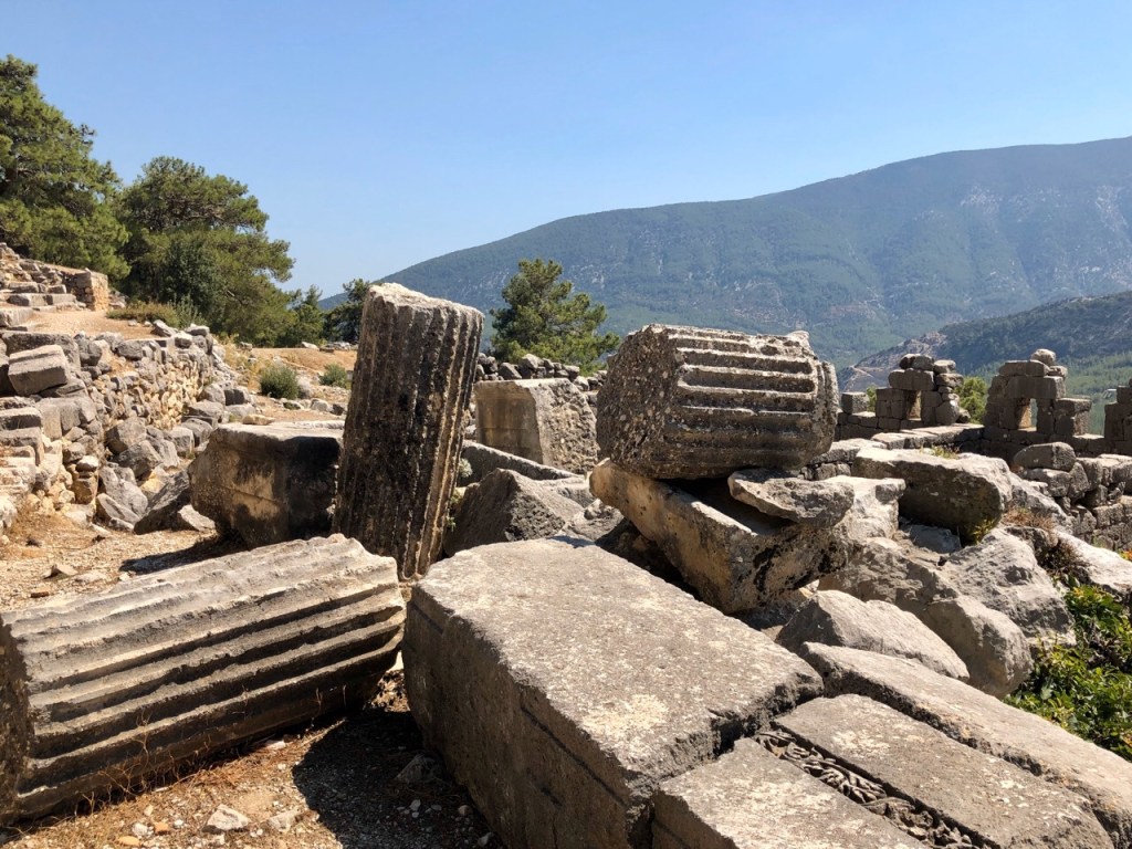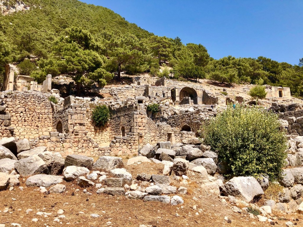 Built on a series of terraces, high up on top of a mountain, Arykanda had stunning panoramic views. Set amongst glorious cedar trees whose needle laden branches sounded like the sea as the breeze ruffled through them, it was easy to imagine what an incredible place it was to live.