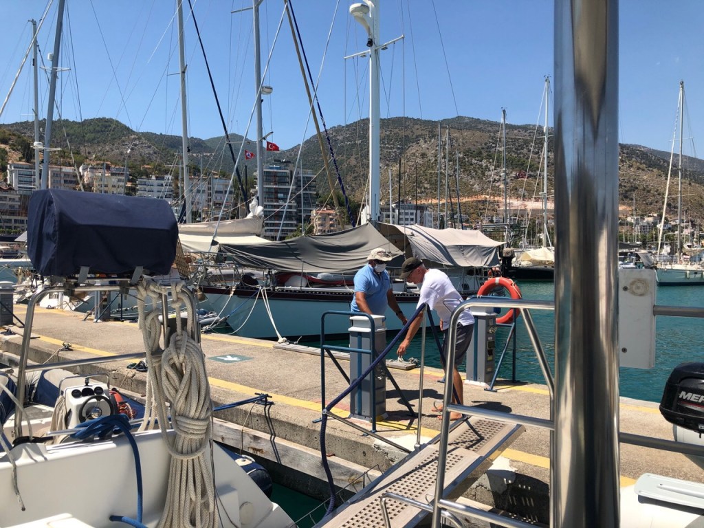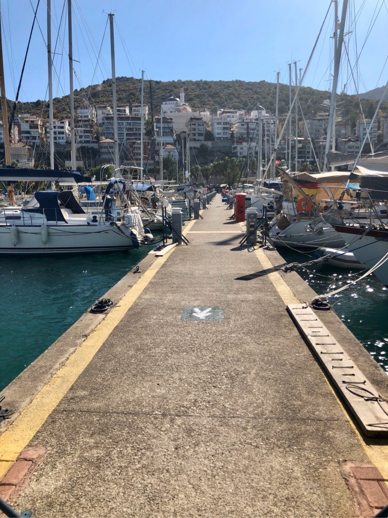 We had an uneventful trip from Kekova Roads to Setur Marina in Finike and the entry into our berth was made very easy and stress free by the excellent assistance we received from the marina staff. We were also fortunate to have a big space next to us so there was plenty of room for manoeuvre.