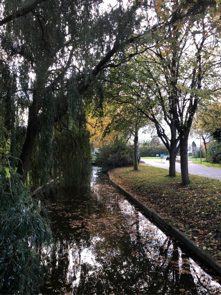 For example, a beautiful heron poised to catch a fish in a nearby canal and the many colours of autumn in the trees both on the streets and in local gardens. Other beautiful sights such as some amazing bright purple berries and the still evening light reflecting trees in the water, have us great pleasure.
