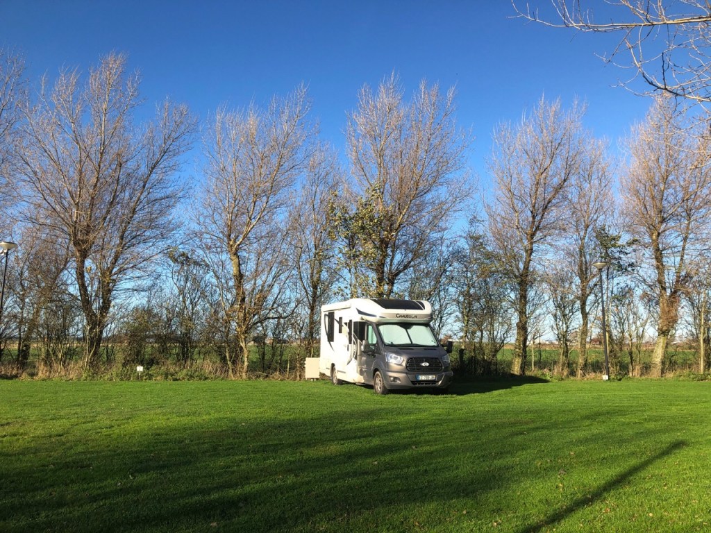 We had arrived in the dark and had to phone up the owner of the site to get the code to plug into the keypad at the gate. It was so dark we almost ran over a low fence but eventually we found a good spot and plugged into the power.