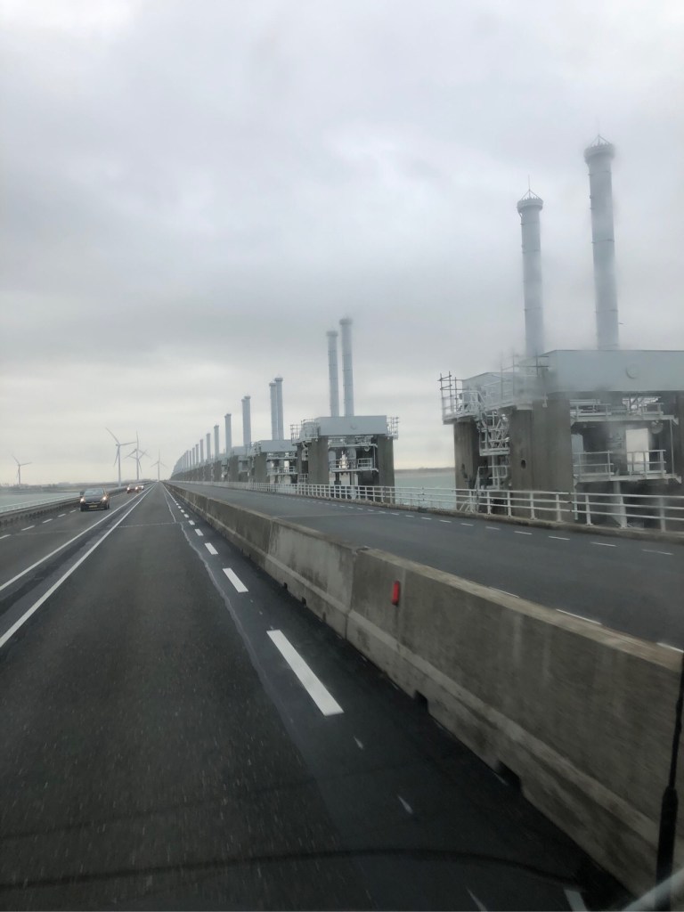 On the way back to the mainland we saw some of the famous and impressive “Delta works” – a massive construction project built to protect the large area of land around the Rhine-Meuse-Scheldt delta from the sea. The works consist of dams, sluices, locks, dykes, levees, and storm surge barriers (that was the bit we saw).