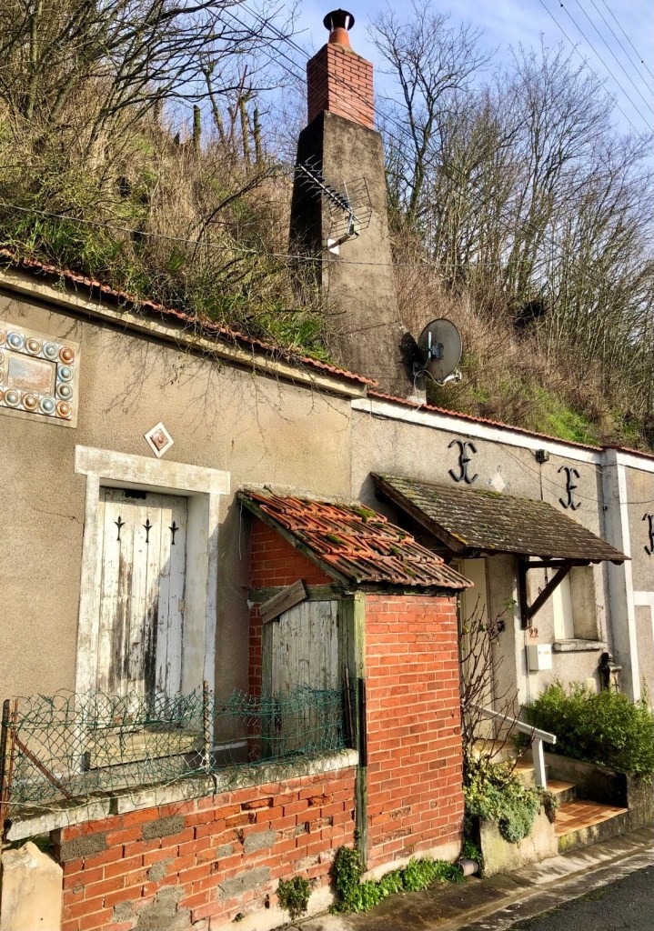 Rather than take the stairs down again we walked down a lane where we discovered a long row of houses carved into the rock face. These cave dwellings, known as “troglodyte homes” were the result of widespread quarrying of the building material called tuffeau which began in the 11th century.