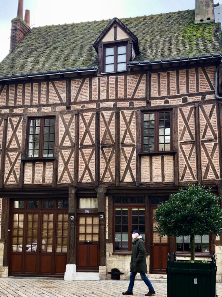 We walked through a narrow alley where we gazed longingly at the pre-Covid menus, wishing we could go into a gorgeous restaurant with crisp table linen, attentive (and handsome) French waiters and eat some wonderful food. Alas! It was not meant to be.