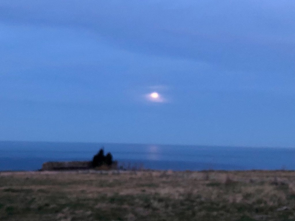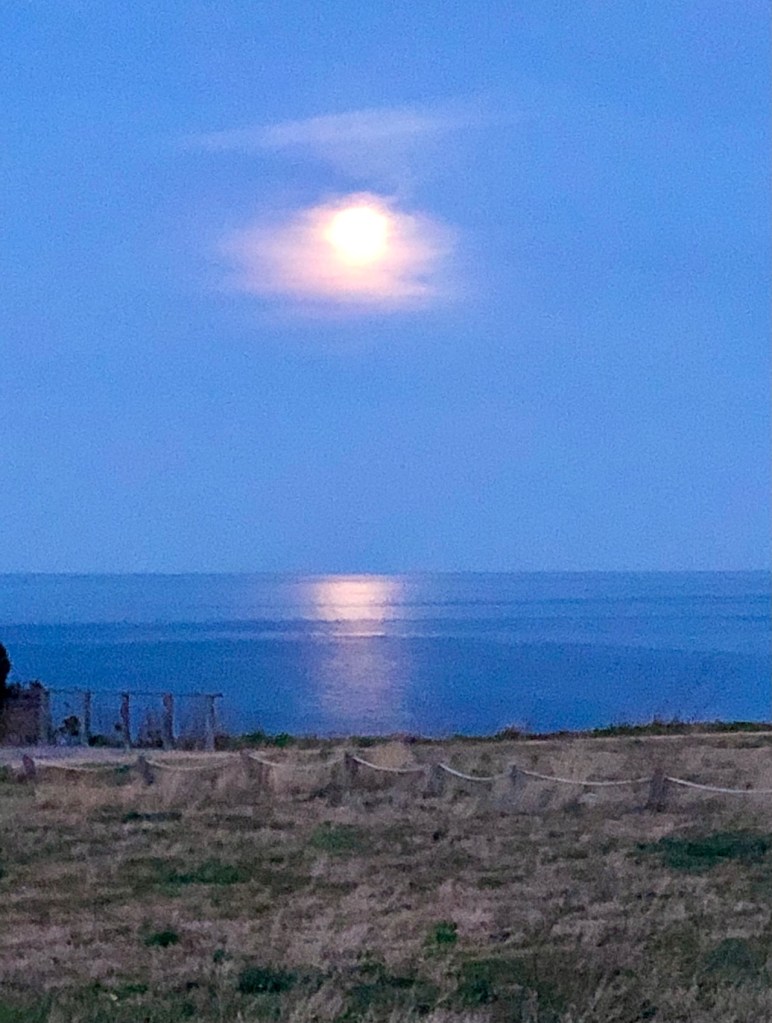 As we sat there a glorious full moon rose slowly over the ocean and within five minutes its bright reflection could be seen in the sea below, making it look as though there were two moons shining. What a wonderful sight!