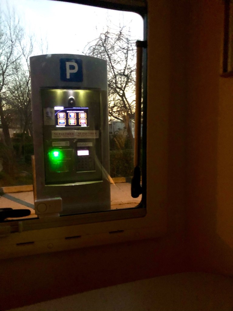 We arrived a little after 5.30pm and to our relief there was plenty of space in the camper park. We stopped at the barrier, paid for our entry and an extra two Euros for water via a machine and hey presto we were in!