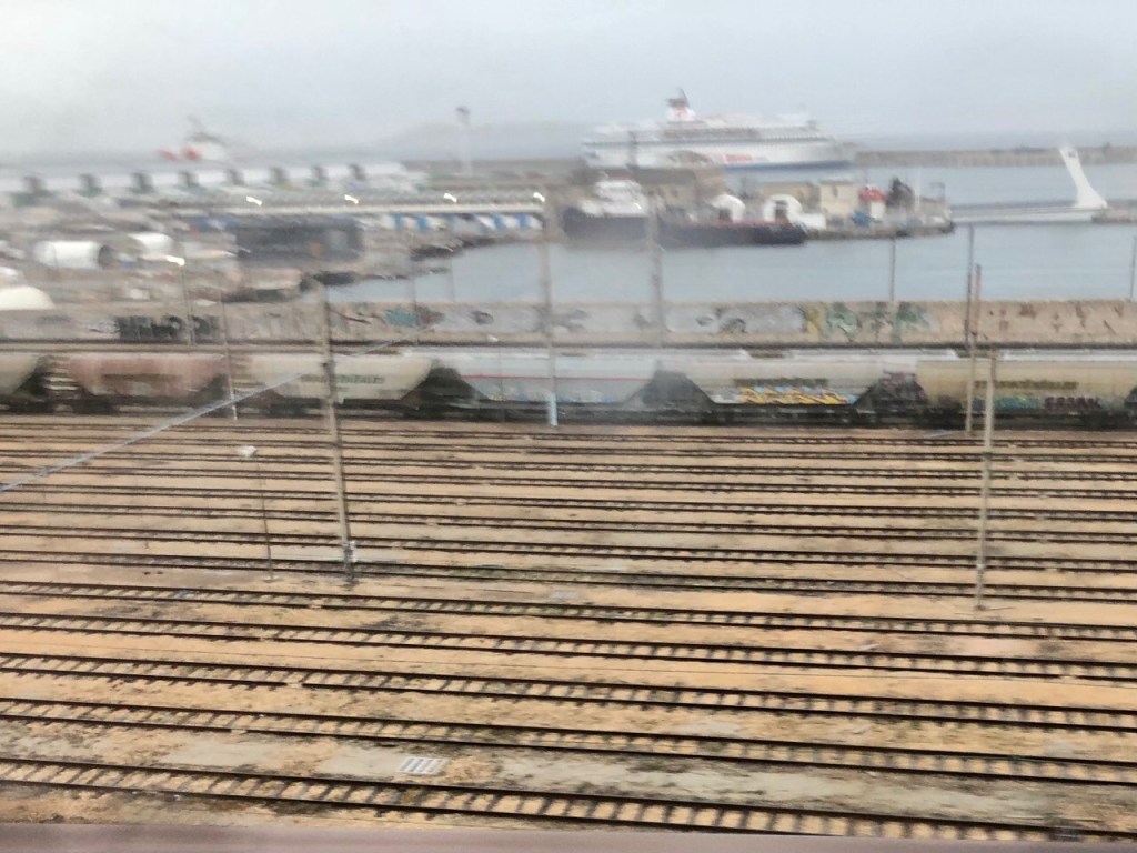 We arrived in the town of Cerbère in the late afternoon. Only four kilometres from the Spanish border, the town is best known for its border railway station. France and Spain use different rail gauges so the station is quite busy with various transfer and gauge adjustment operations.
