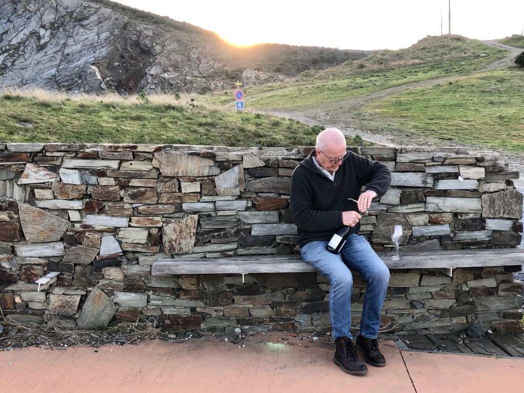 After a bracing walk along the cliffs we sat on a seat conveniently placed just in front of the van and enjoyed a delicious bottle of wine (amazing wine is another good reason for travelling in France!)