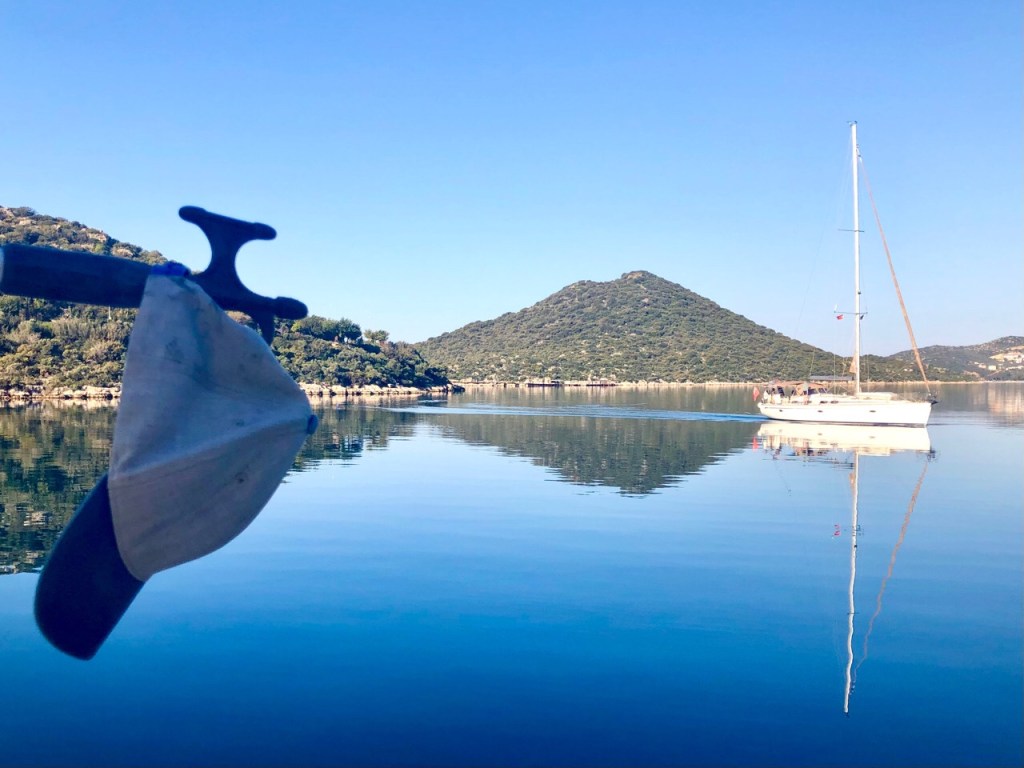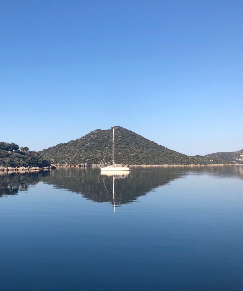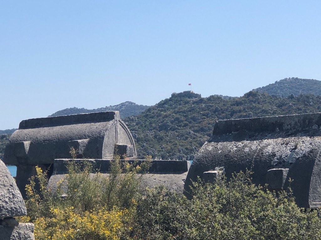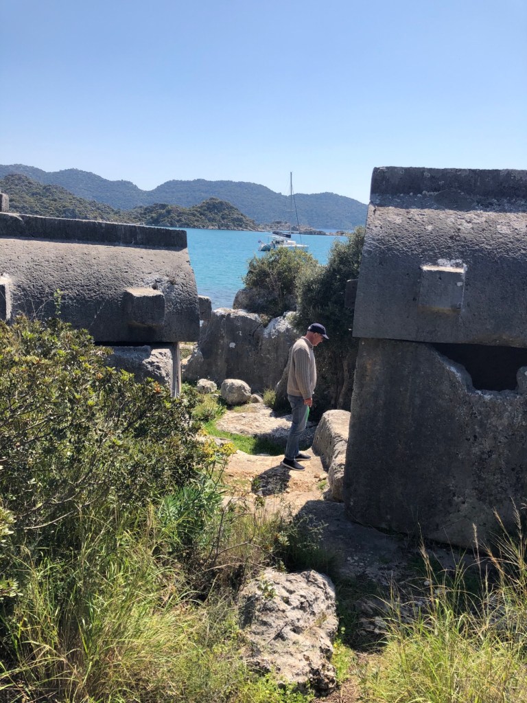 We had a very pleasant motor to Kekova Roads – there wasn’t a breath of wind so we didn’t bother getting sails up.