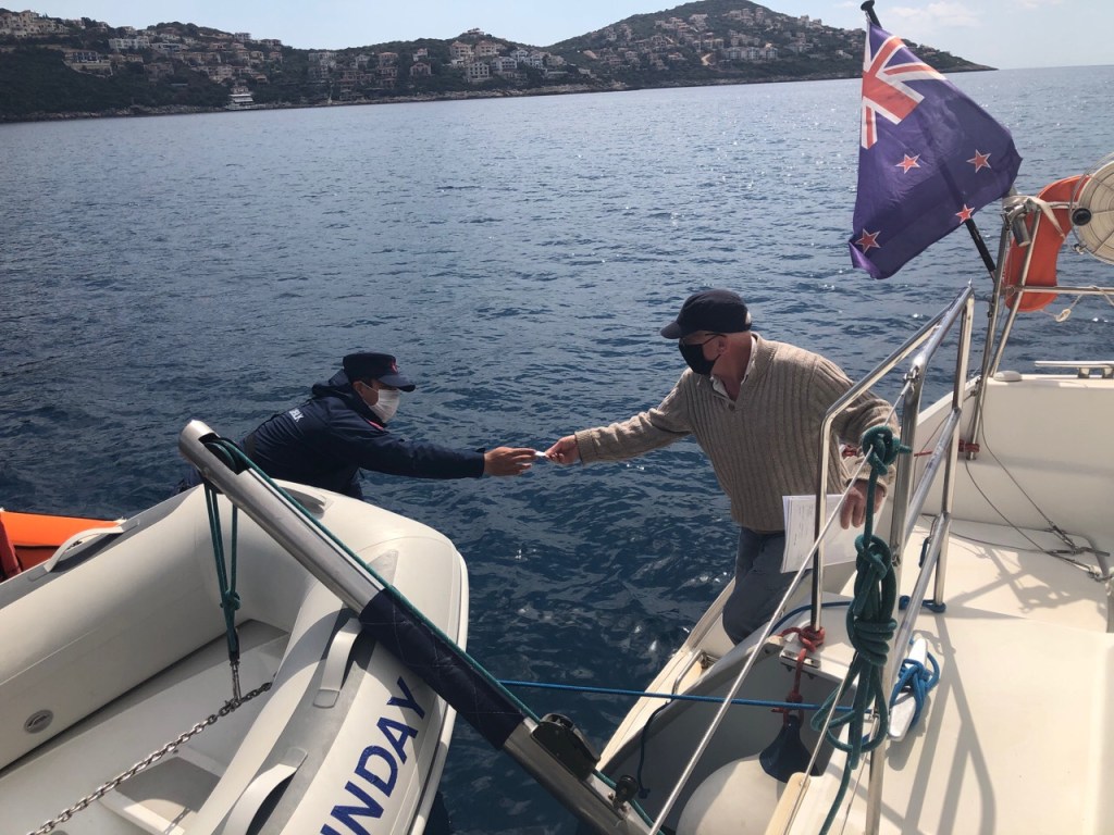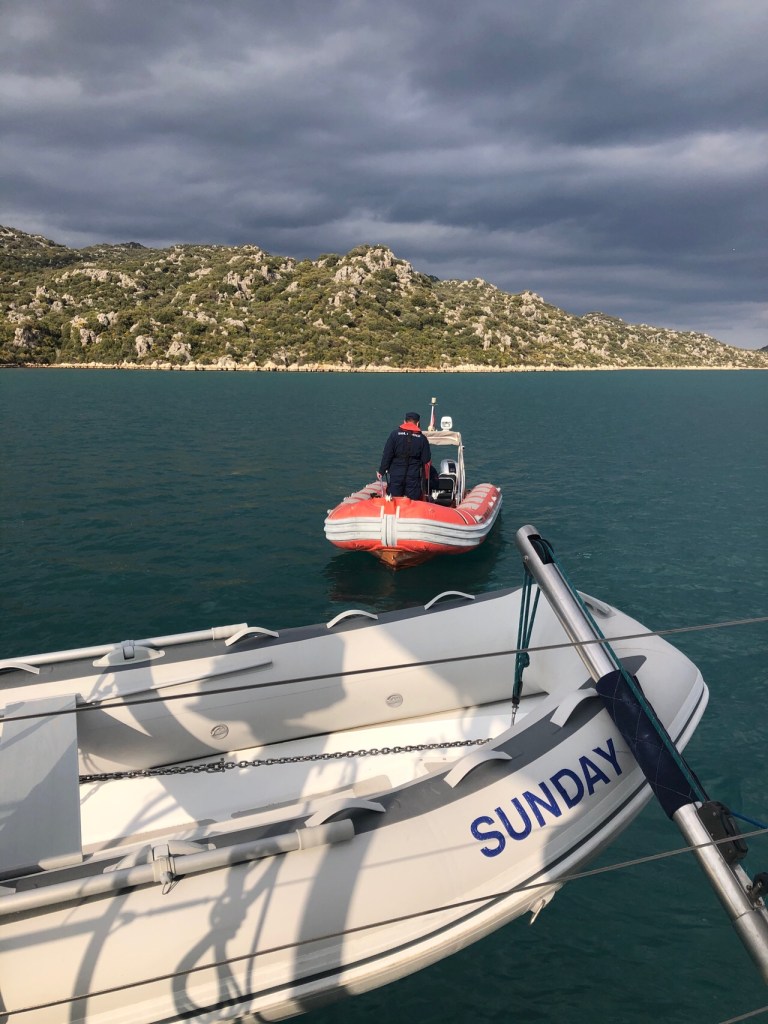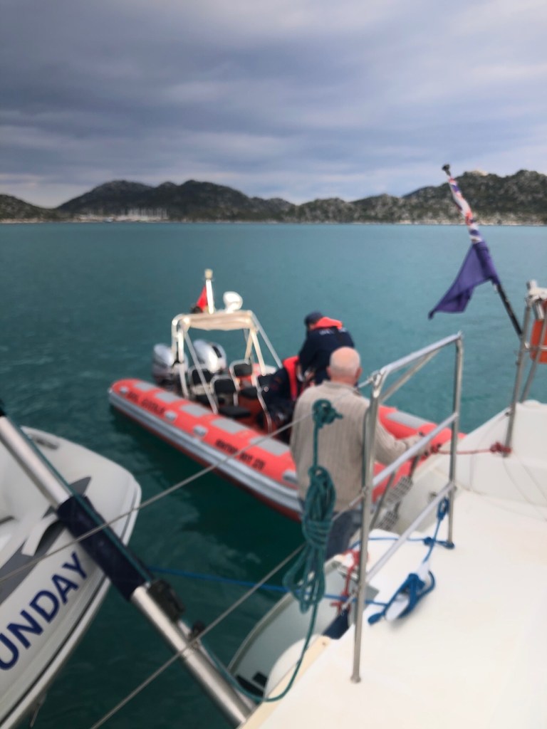 Safely anchored opposite the remains of what was once the ancient Lycian port town of Teimiussa, we were visited by another couple of Coastguards who once again wanted to examine our paperwork and made more phone calls.