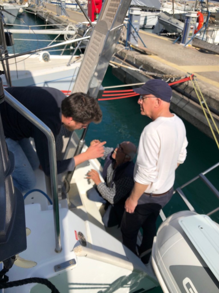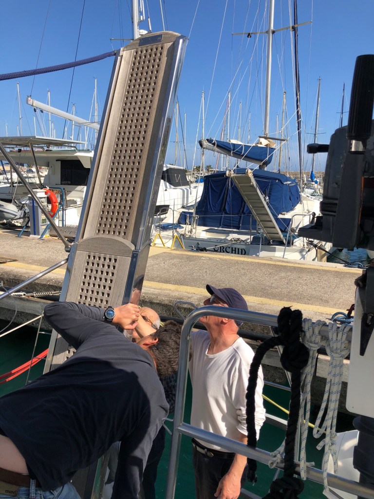 Cemal (Jamal), the technical manager at the marina and the hydraulic engineer came to look at our passarelle (gangplank) which is leaking hydraulic fluid.