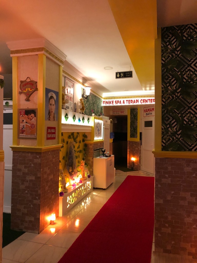 Before our massage we were taken into a steamy marble-lined room with two slabs on which we were to lie.