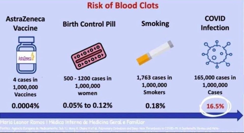 And just by the way, the Astra Zeneca vaccine is being provided at NO profit. Additionally, for those worried about blood clots it’s estimated this syndrome occurs in just six people per one million people vaccinated, on average, with the risk even lower for those over 50. This is about the same as your risk of serious injury from being stuck by lightning in a year in Australia.