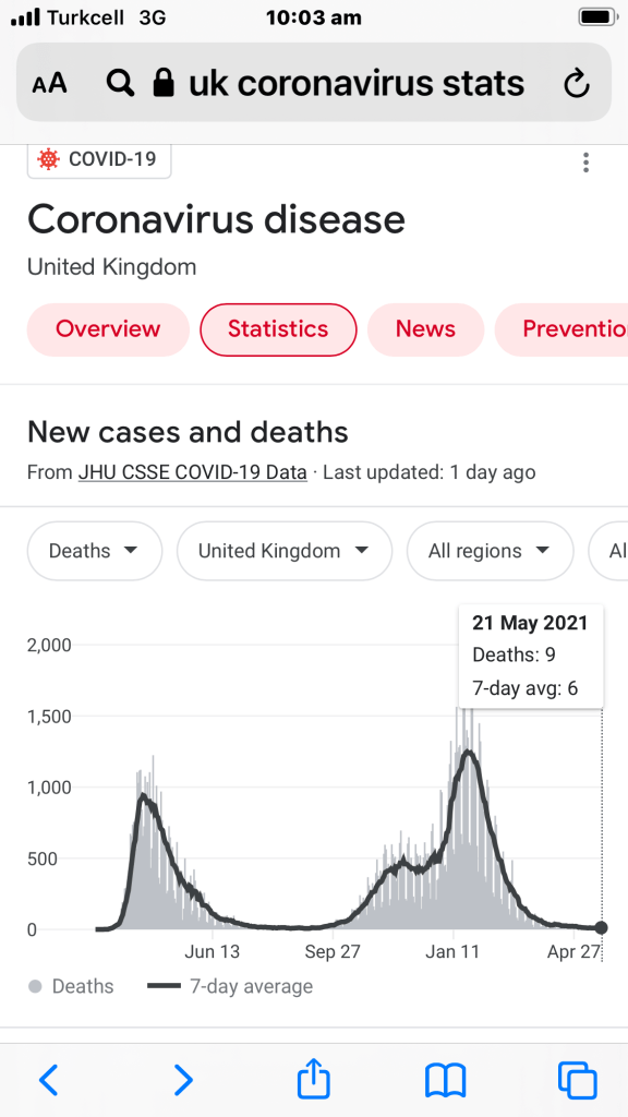 So for those anxious about having a vaccine – look at the numbers. The vast majority of people in the UK who have been vaccinated have had no harmful side effects. In contrast, the small number of people who have ended up very sick in hospital and in some cases, dying, with Covid have been unvaccinated or have caught Covid before they were vaccinated or before their immunity had built up.