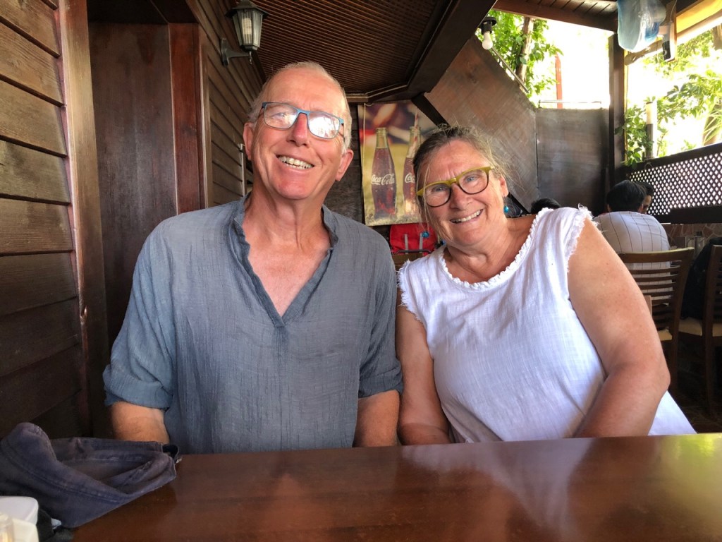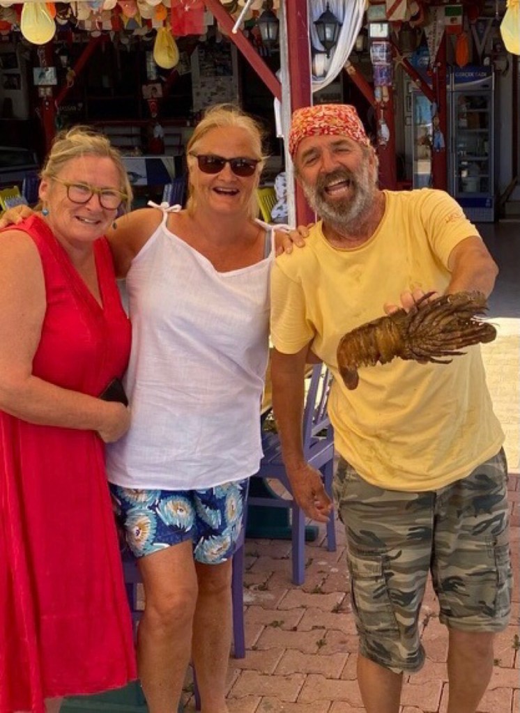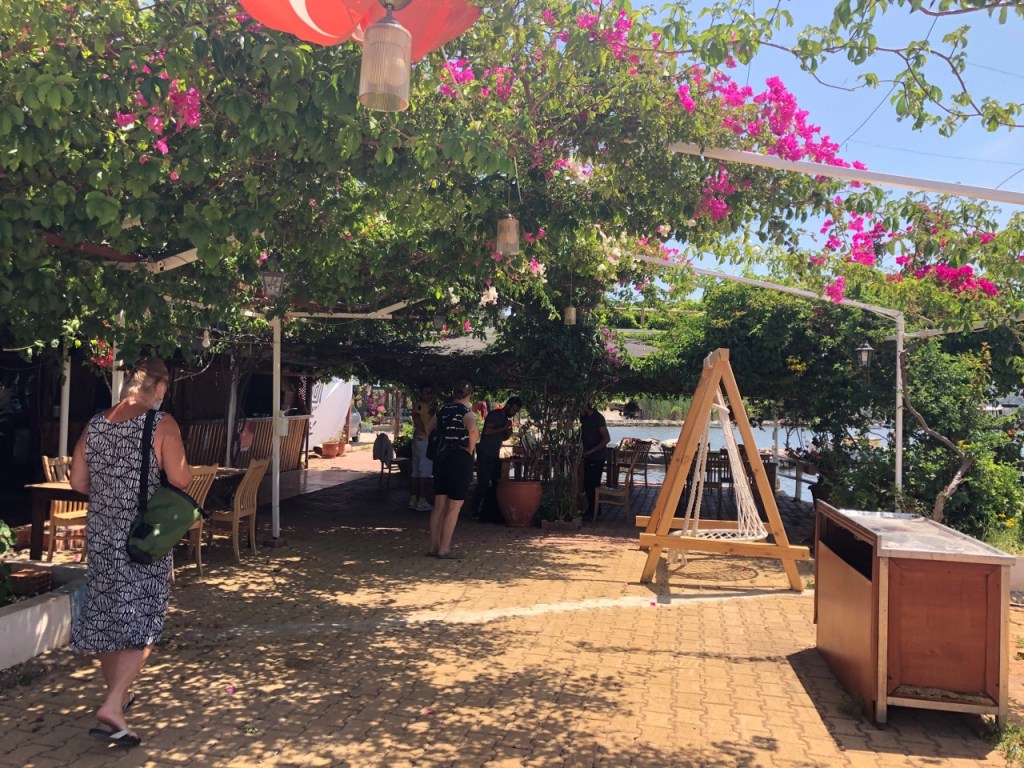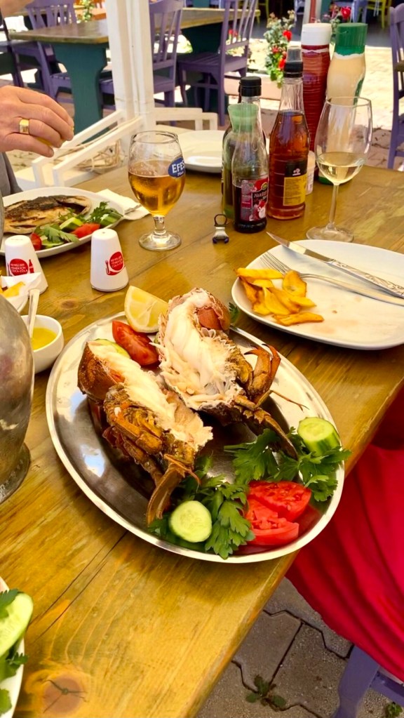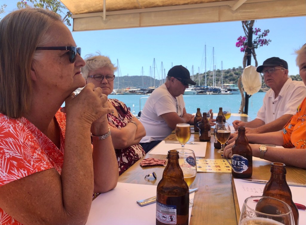 At our first lunch there we (Jonathan and I and Nikki who had been staying with us and Sue and John from Catabella ) were joined by our friends from Finike Marina Jill and Shelley who live aboard their beautiful Catamaran Eucalyptus (yes, they’re Australian!)
