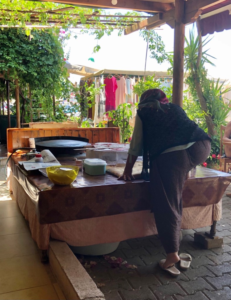 We tried to do our best to make up for this by spending money where we could – buying some fruit and vegetables at the little greengrocers, eating gözleme one day for lunch etc. (We never tire of watching the gözleme making process!)