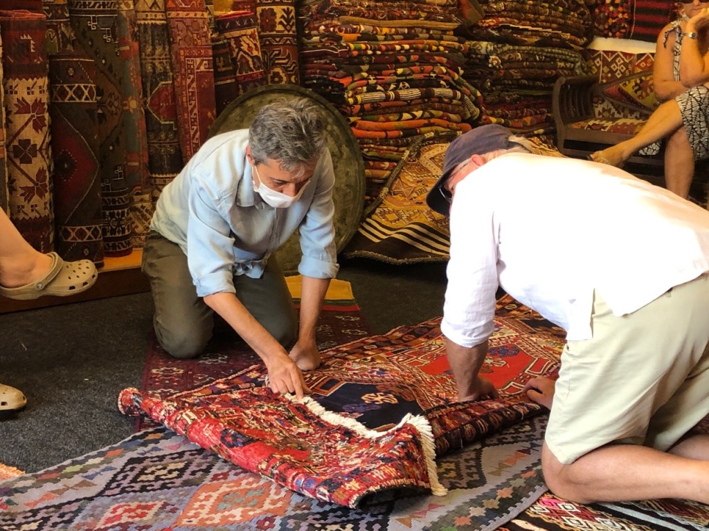 Once again, the ever patient proprietor and his mentor, pulled out all sorts of beautiful works of art for us to see. Several among us were tempted but wanted to take measurements and decide if a sailing yacht was really the place to have antique rugs.