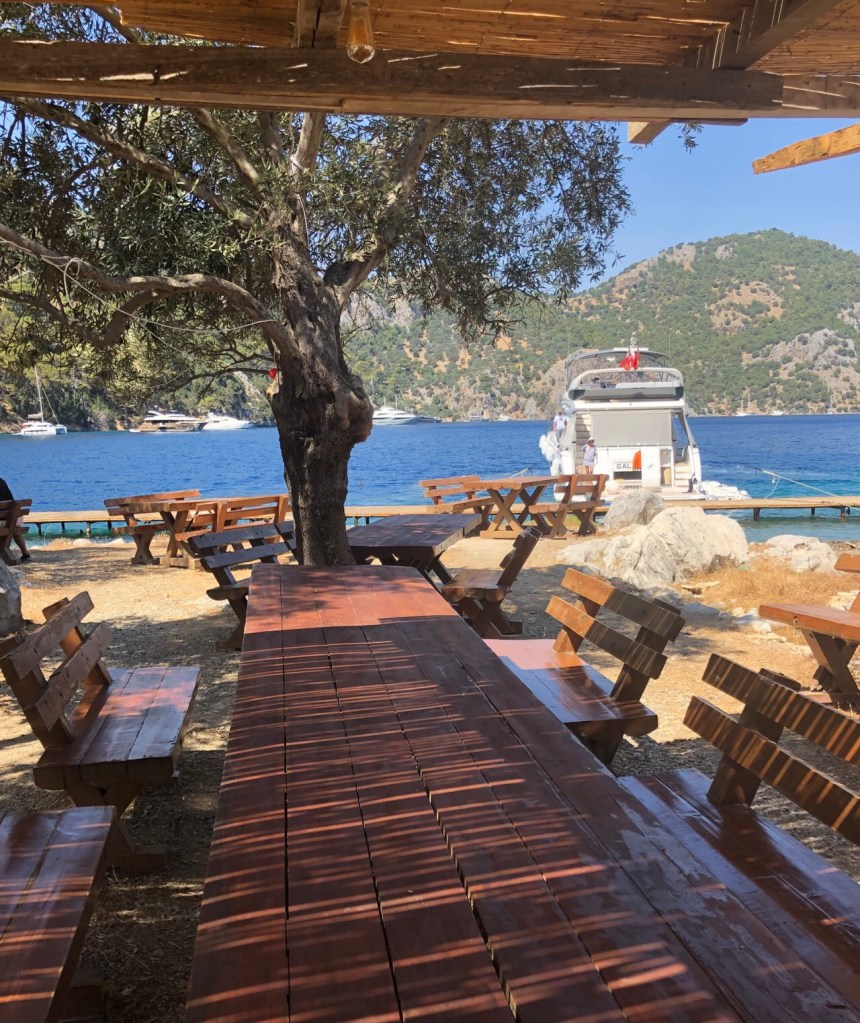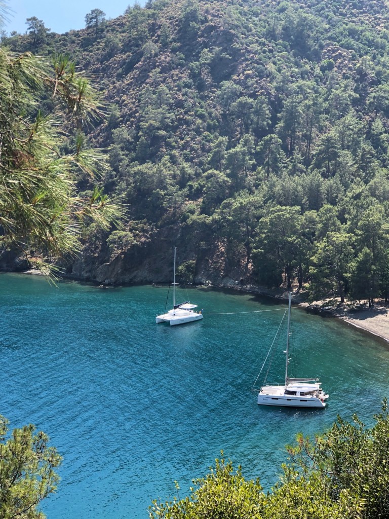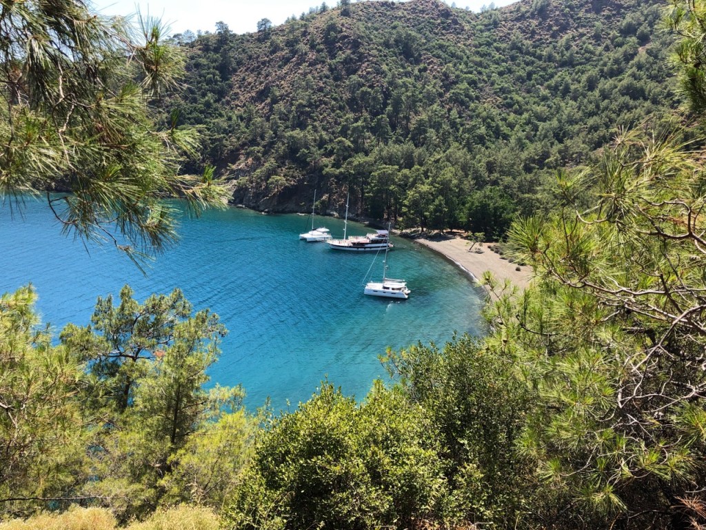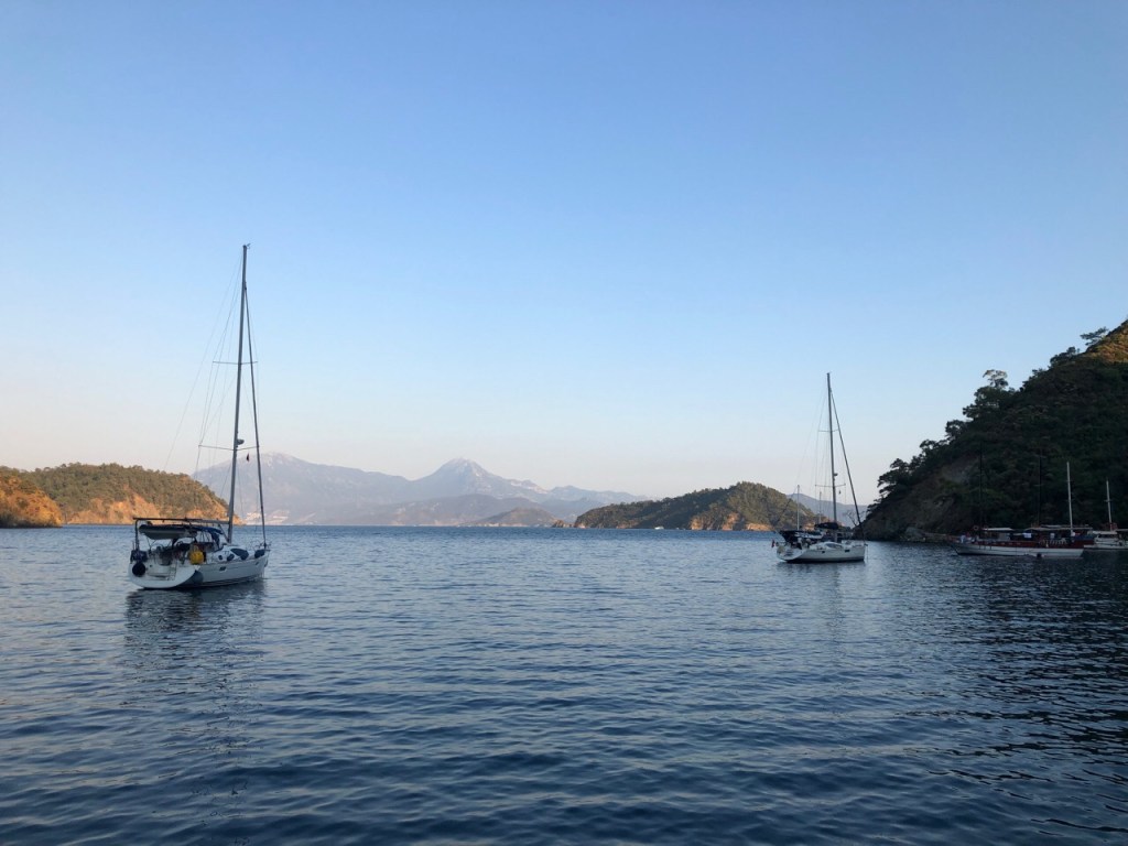 After a night in the noisy town anchorage in Gocek we moved to Seagull Bay in the Gocek National Park.