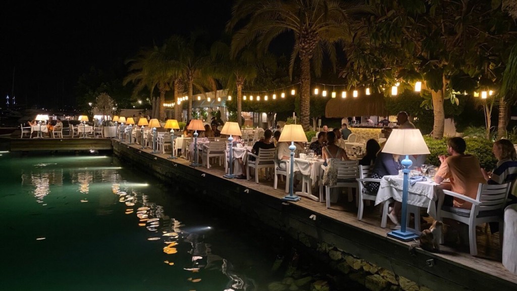 After going through the normal nightmare of “Med Mooring” (more of that in my next blog!) we went ashore to the newly renovated restaurant in the bay.
