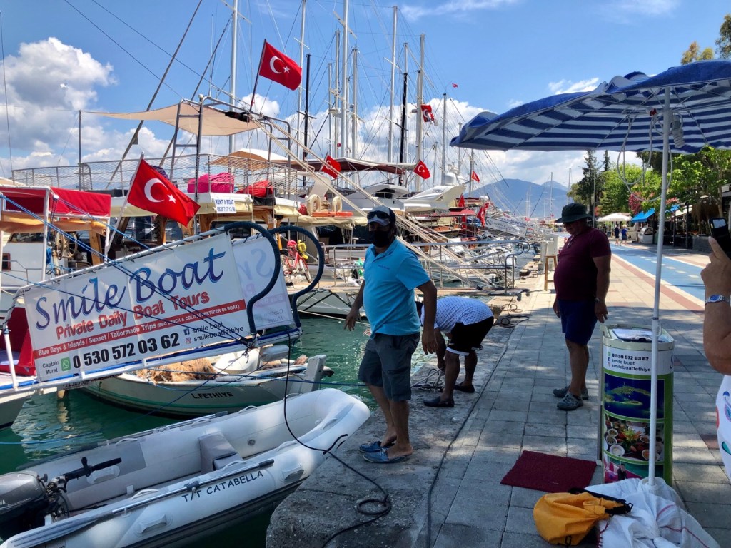 We were able to leave our dinghies outside the juice bar where Ryan could keep an eye on them. We were also helped by Captain Murat of Smile Boat Tours. Such a lovely fellow who, while helping us up, decided he was going to put a piece of carpet on the quay to save our knees!