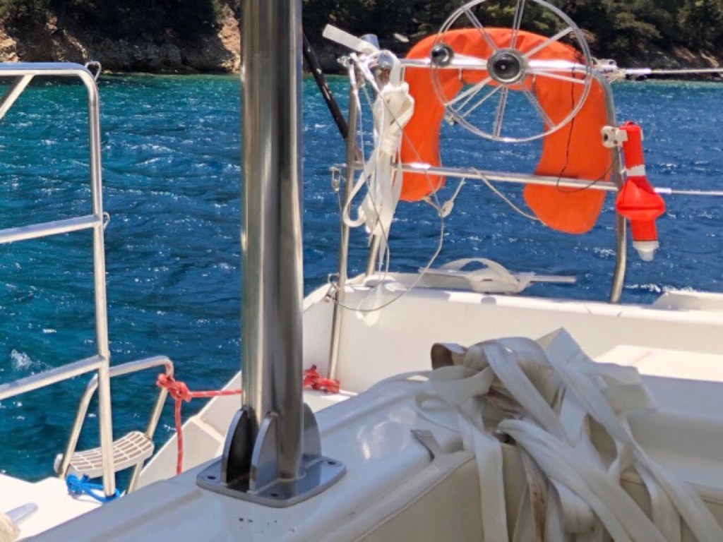 With the help of our two angels – Cรผneyt and his partner from S/V Lagon – we managed to untie our lines and pull up our anchor.