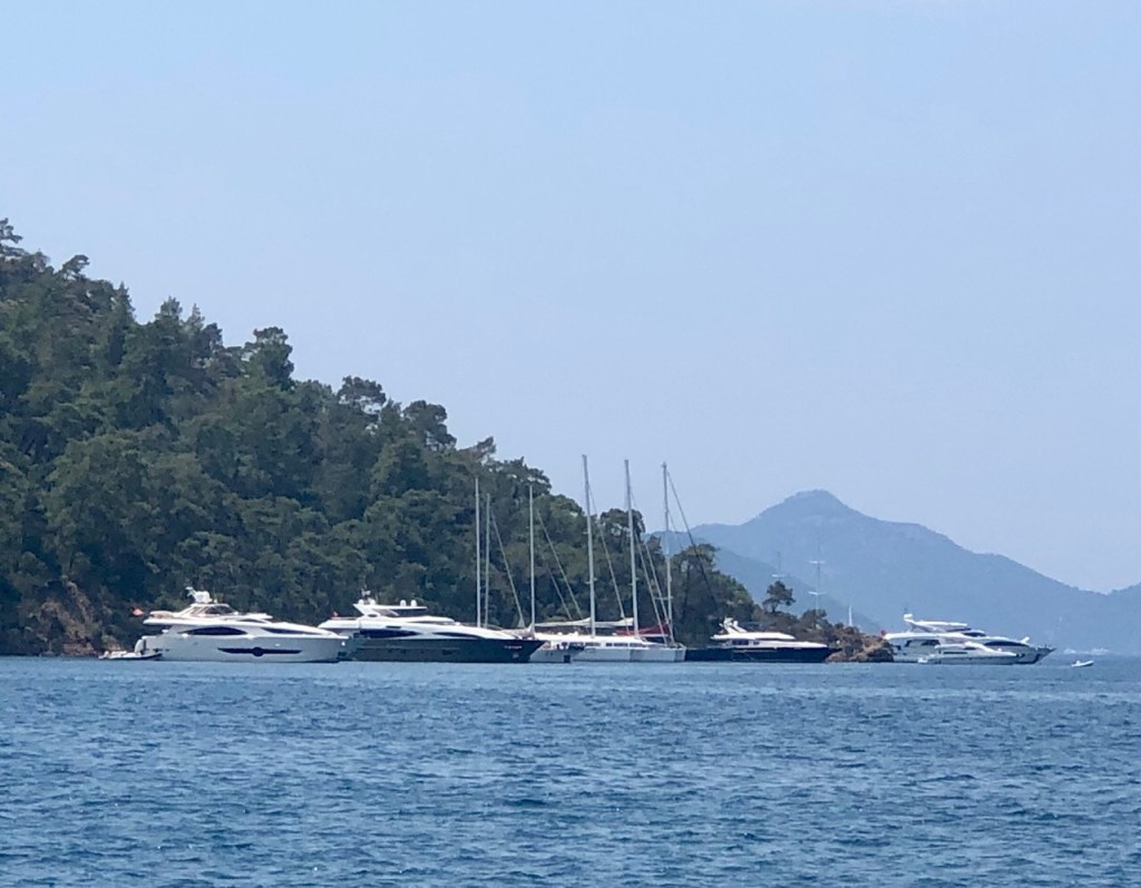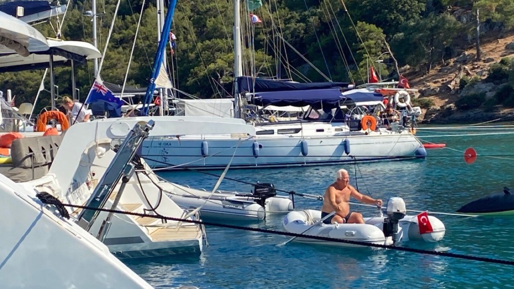 Our heroes guided us to the new spot in 22 Fathom Bay where we were skilfully assisted in by their sailing companions on S/V Mr Oka and S/V Ulgen (who, again, we knew from Finike marina.)