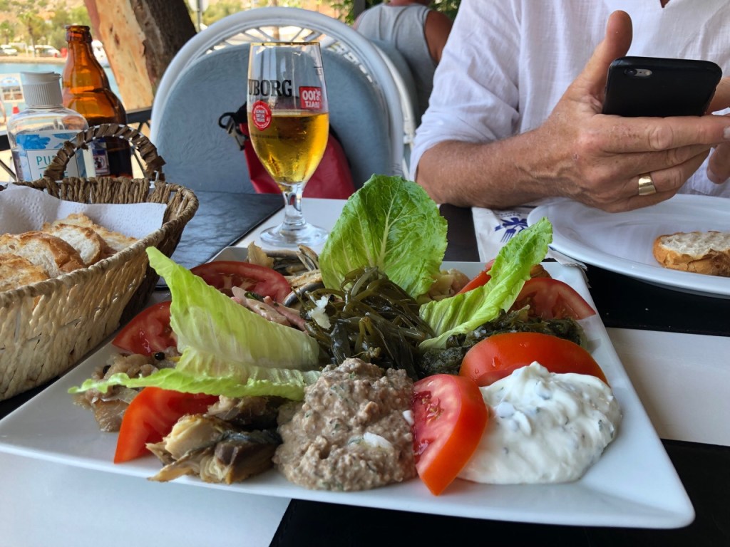 A late lunch started with a delicious meze followed by wonderful fresh fish. We felt very full and very fortunate!