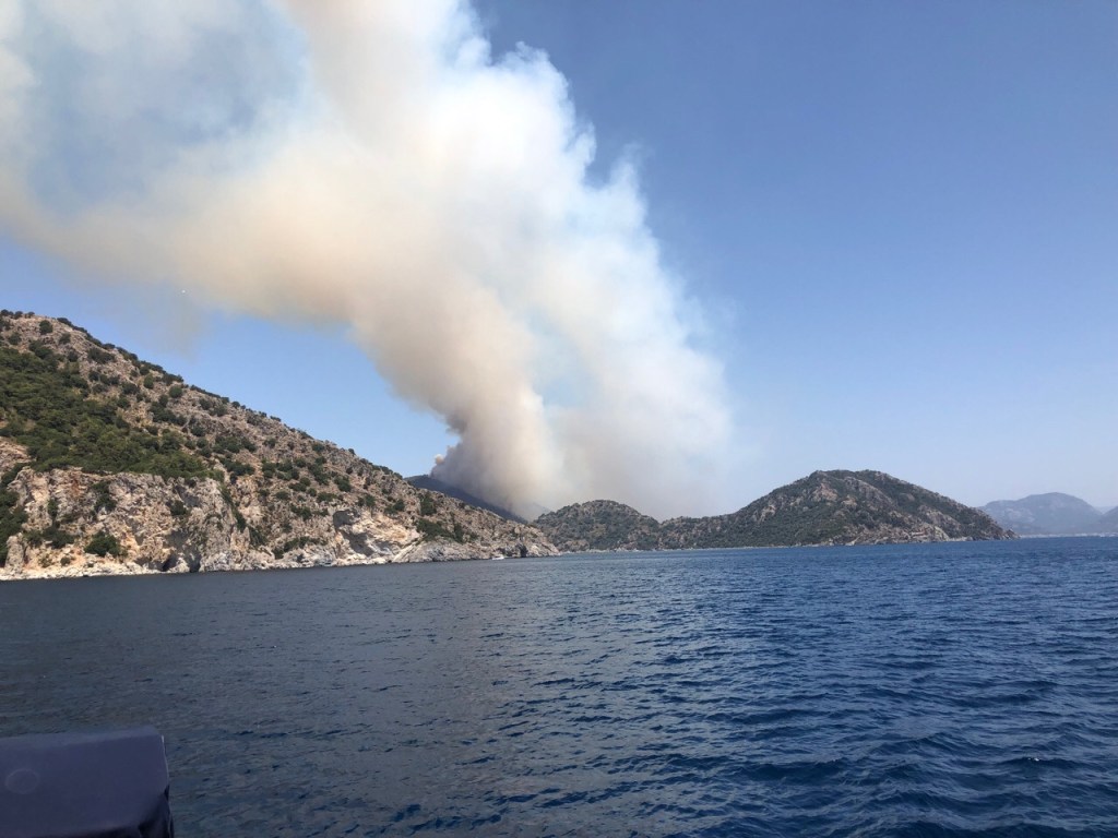 So we upped anchor and made a bolt for it to a bay just around the corner called Turunç Bükü. Once there, we were safe from the fire although we could still hear the helicopters hard at work for quite a time.