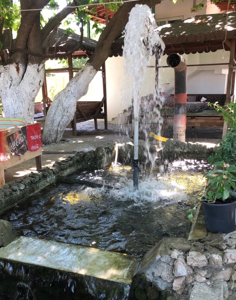 At the stall where we stopped we saw that next to the fountain was a pressure valve which suggests there was an underground aquifer below where the water was under pressure and bubbling up to the surface.