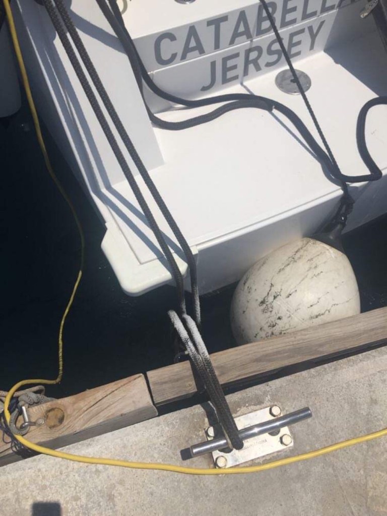 As anticipated, the wind changed and all that was stopping Catabella from banging against the dock was her small strategically placed ball fender.