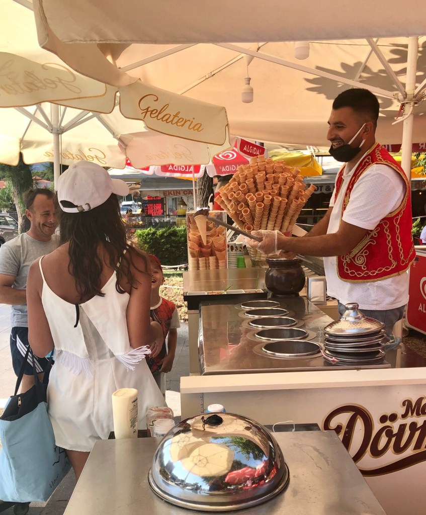 We sat down for a cold drink at a lovely shady restaurant called Gorya and ended up chatting to the owner and then staying for dinner. We asked her to choose some meze dishes and then she recommended a couple of main courses. We ended up with an absolute feast! There was a very good singer performing that evening so we were serenaded as we ate!
