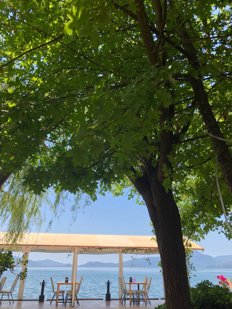 There was a slight breeze wafting across the water but it had little effect on the stifling heat so we stopped at a cafe to have a freshly squeezed orange juice under a shady tree.