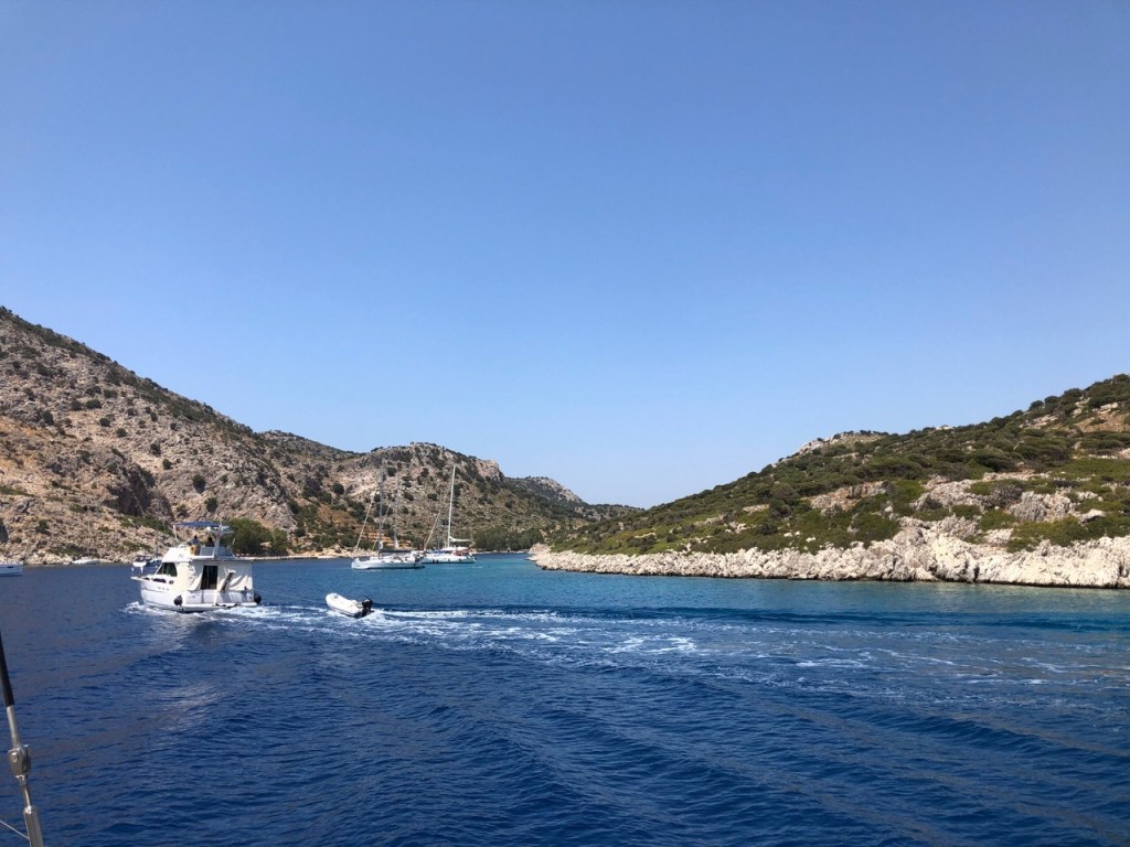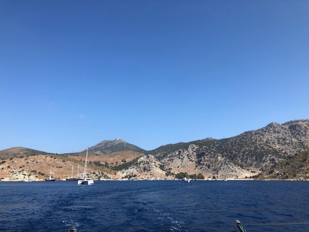 On the way there we past the island of Simi which we could see in the distance. This had been our last port of call in in Greece before arriving in Turkey on 1 July 2020.
