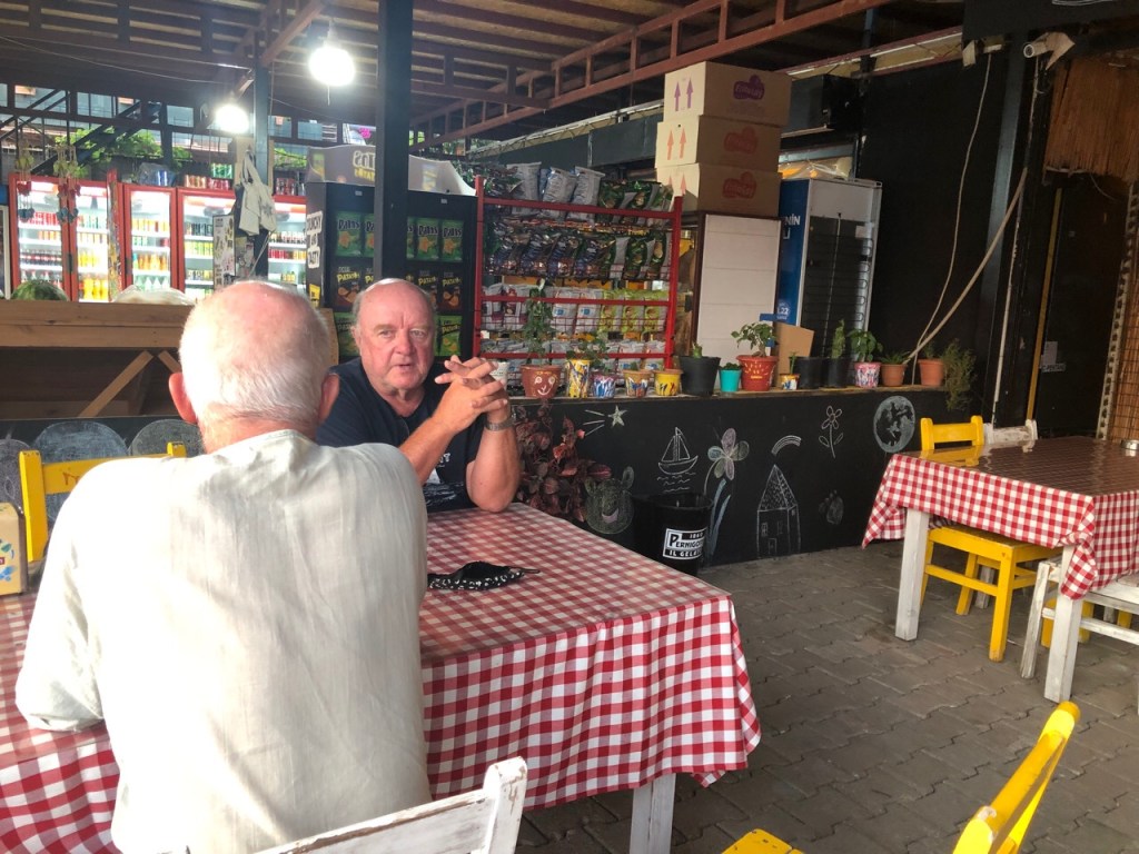 The cafe wasn’t allowed to serve beer but they also owned the shop next door so they got round the rules by grabbing some beers out of their shop fridge and serving it in coffee mugs and a beaker!