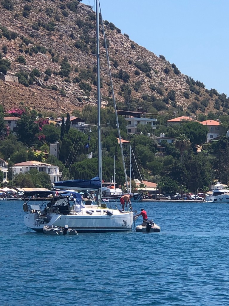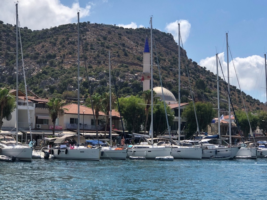 So we bade farewell and set off on the short trip back to the lovely little town of Bozburun. We were very excited at the prospect of seeing our daughter and son in law after five months apart but still slightly nervous that it might not happen as in this Covid world all plans can be changed at a moment’s notice. We have learned the lesson well that all plans have to be “written in the sand at low tide”!